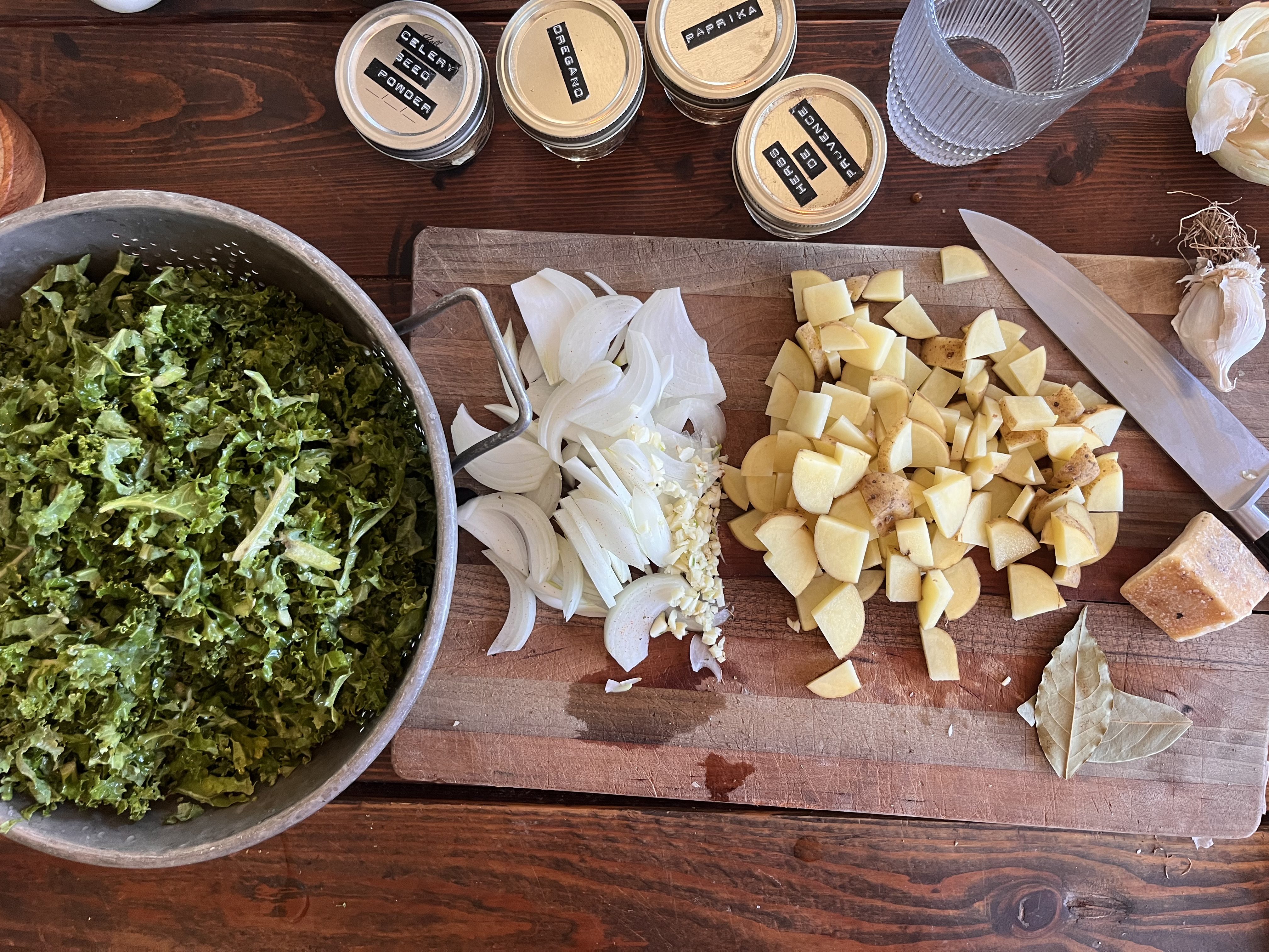Our family does a lot of cooking at home and though we have many favorites, this one holds top position for my kids. It’s loaded with kale which they’ll only eat if it’s in this soup. It’s comforting, nourishing, and still somehow light. A perfect fit for winter. This soup will help you build the habit of saving your parmesan cheese rinds. Adding the rind while simmering lends a creamy, rich flavor with no cream at all. It’s a non-negotiable. Serve with some crusty bread lathered in butter or with a favorite cheese broiled on top for a real treat.