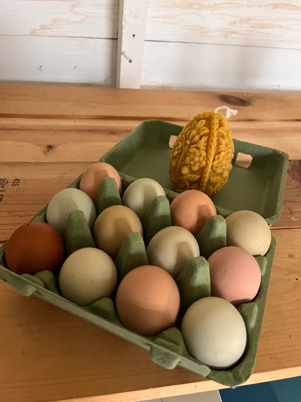 *EASTER SPECIAL TODAY 4/1 -SUNDAY4/5! Buy a carved beeswax egg candle, get a dozen eggs 1/2 price. *