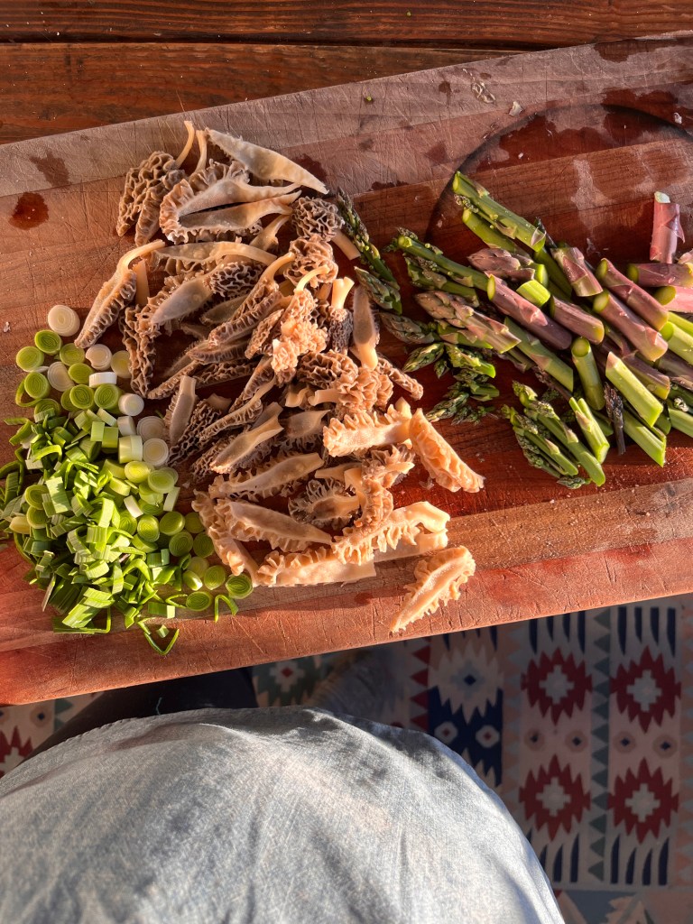 - Morels (or store bought mushrooms if you aren’t a mushroom hunter), we used 16 small ones, which would be about 1.5 cups chopped. I quartered them lengthwise.